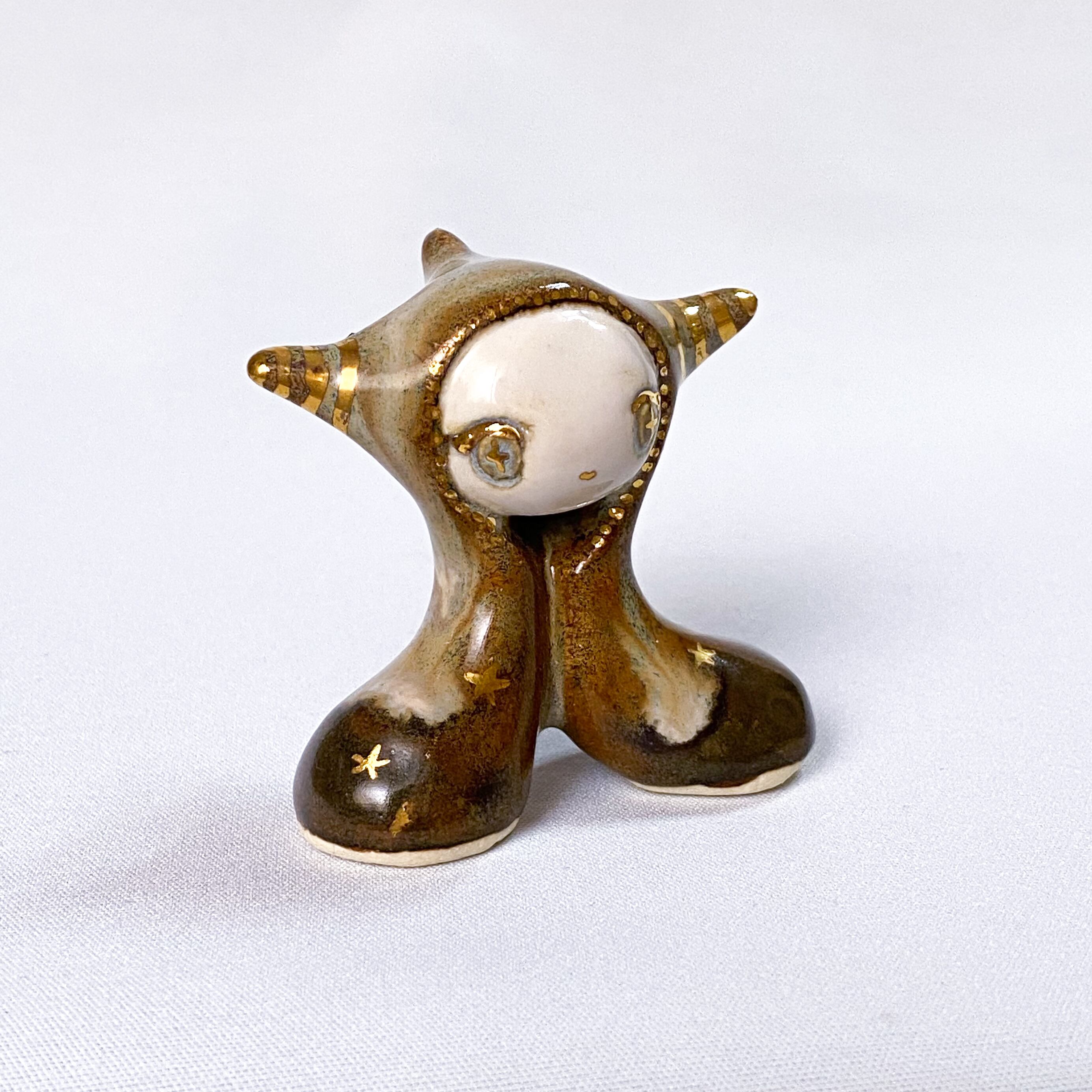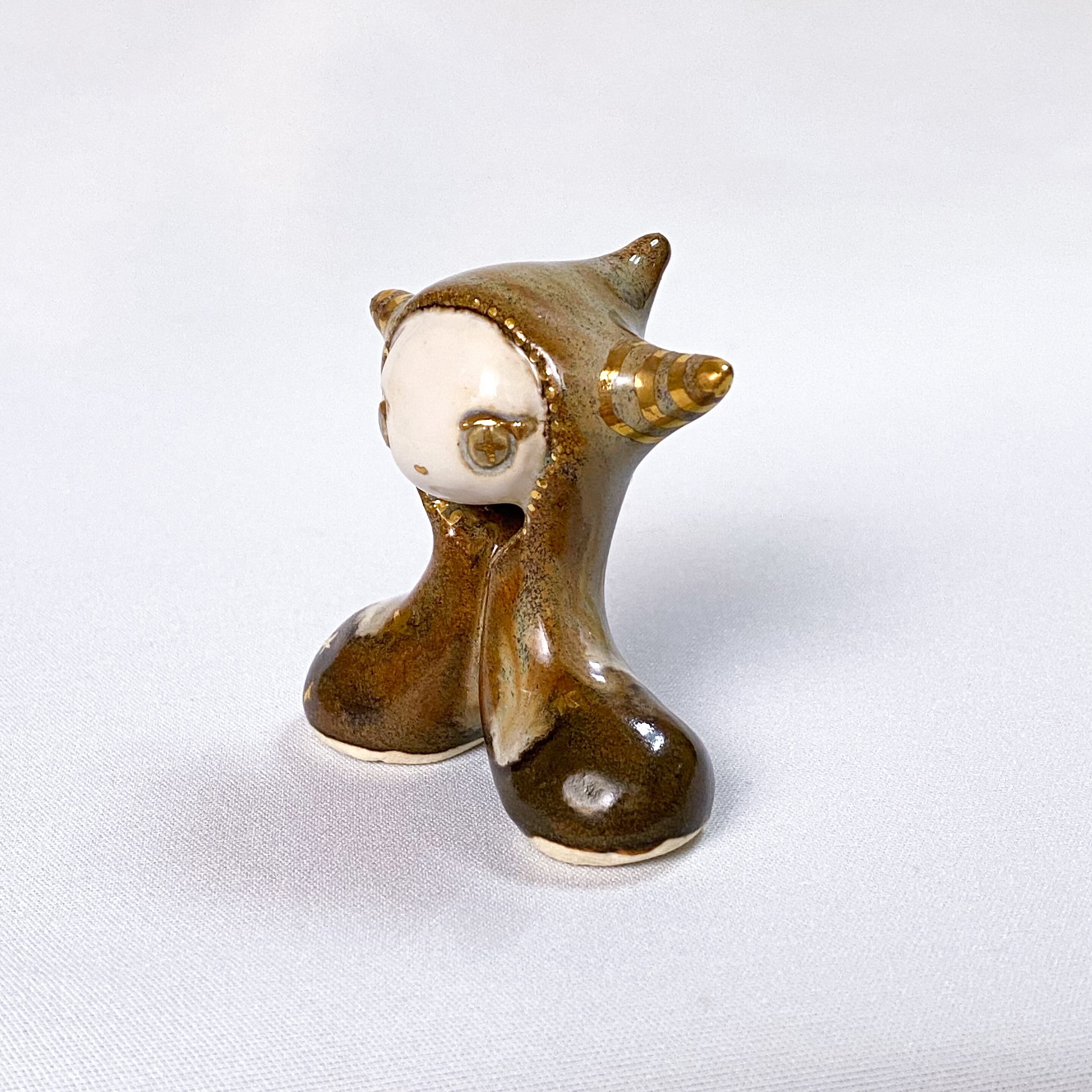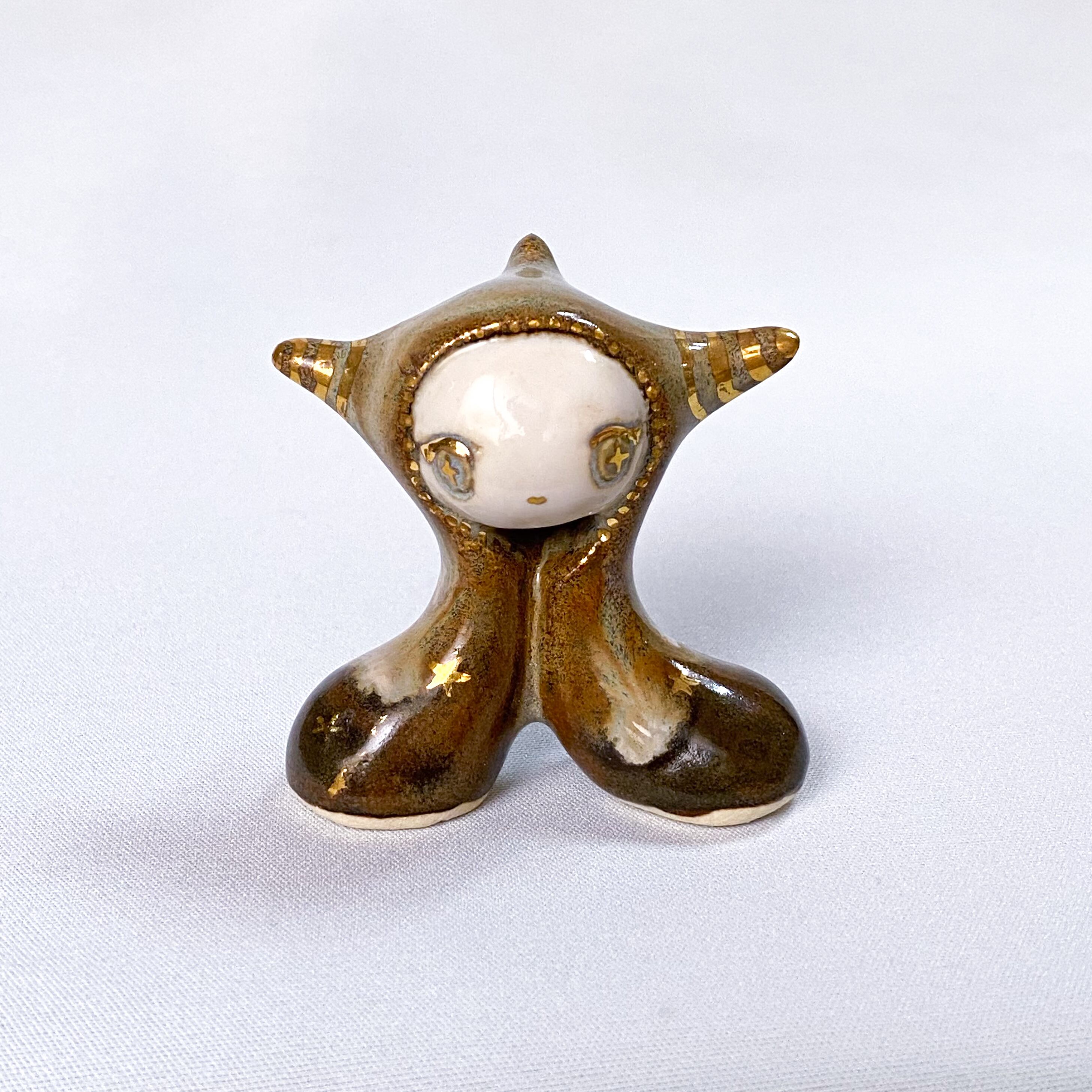 手びねりでひとつひとつ造形し、釉薬をかけたあと金彩で目や模様などを描いています。