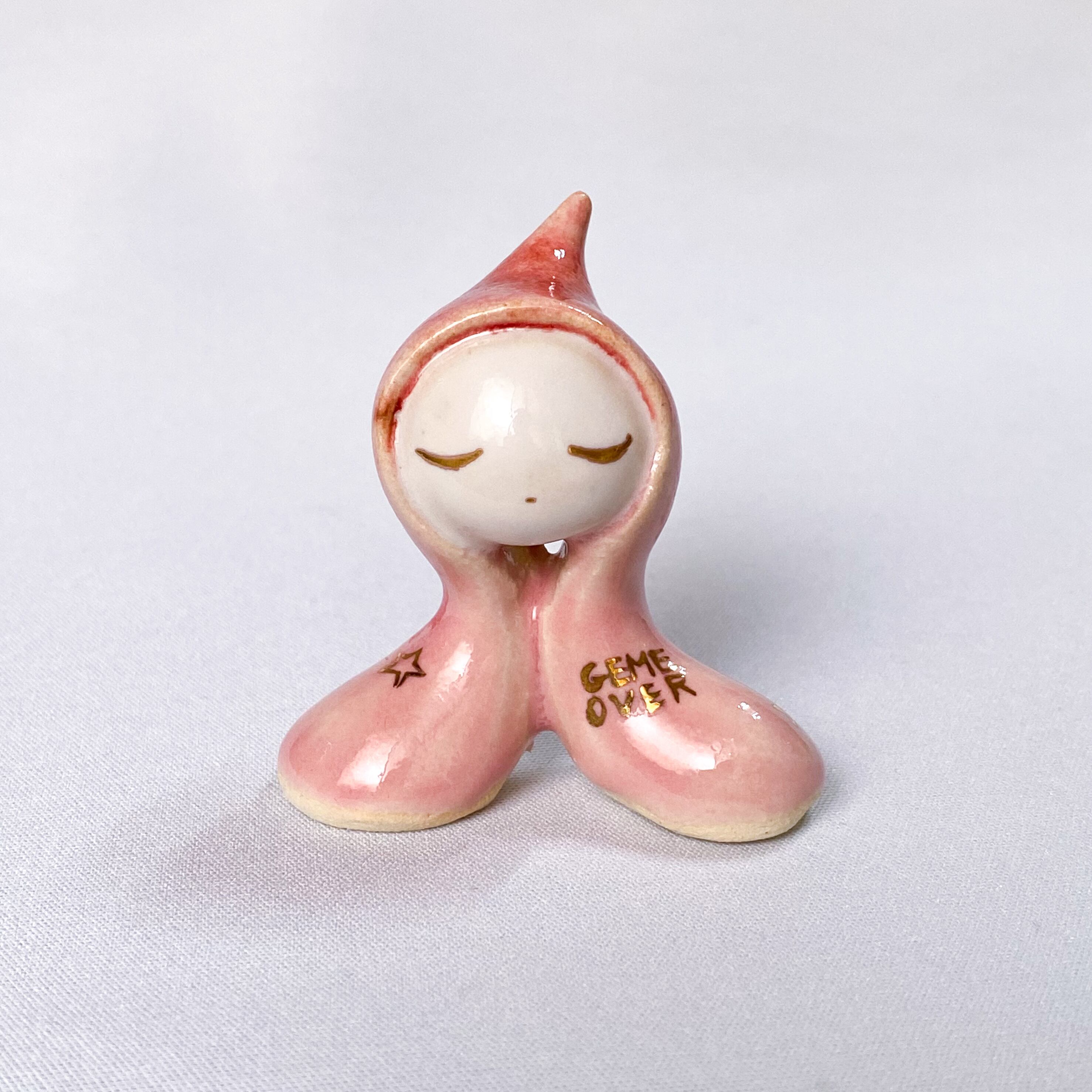 手びねりでひとつひとつ造形し、釉薬をかけたあと金彩で目や模様などを描いています。