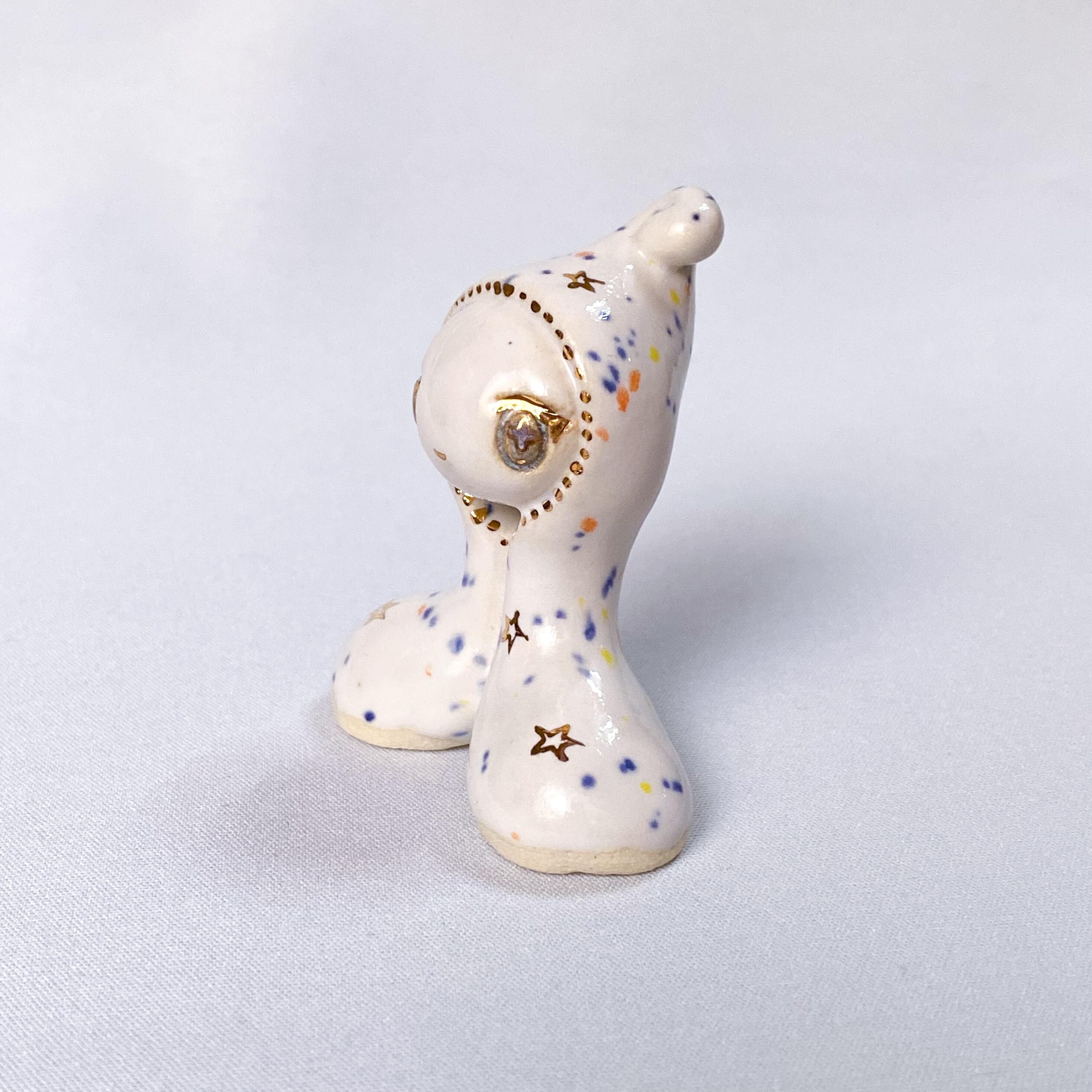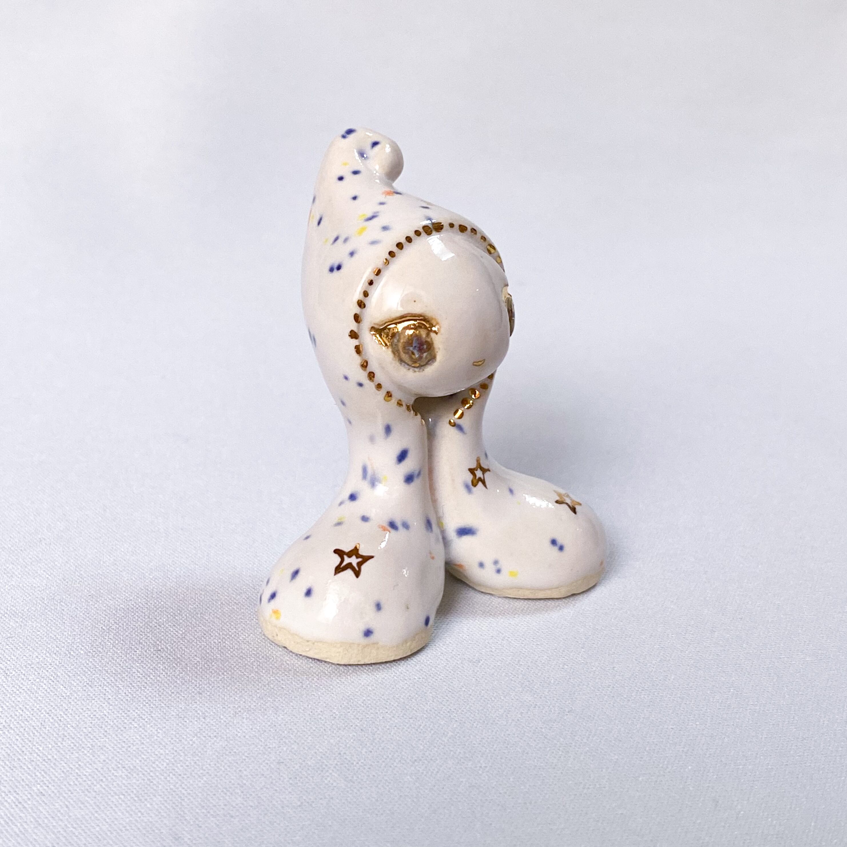 手びねりでひとつひとつ造形し、釉薬をかけたあと金彩で目や模様などを描いています。
