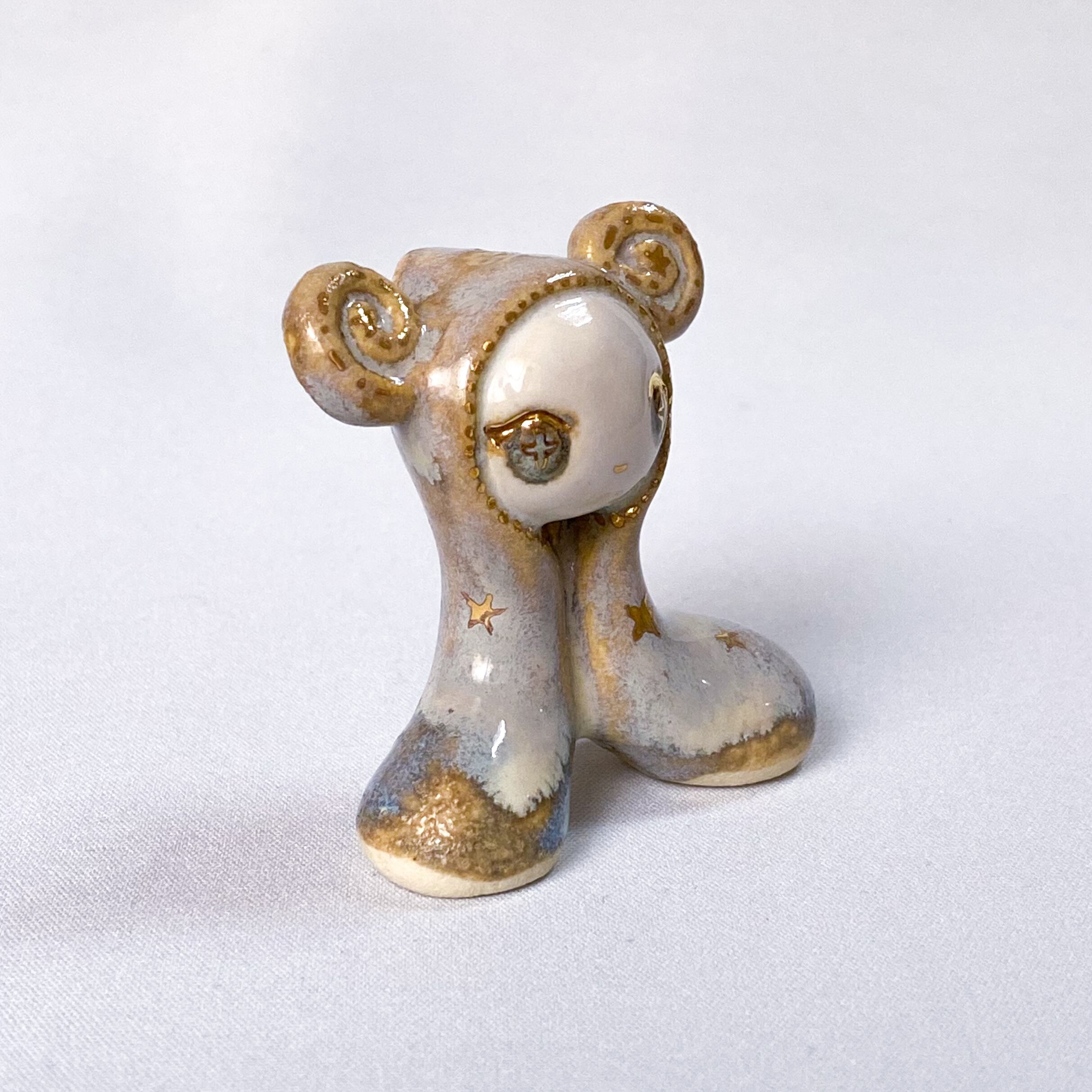 手びねりでひとつひとつ造形し、釉薬をかけたあと金彩で目や模様などを描いています。