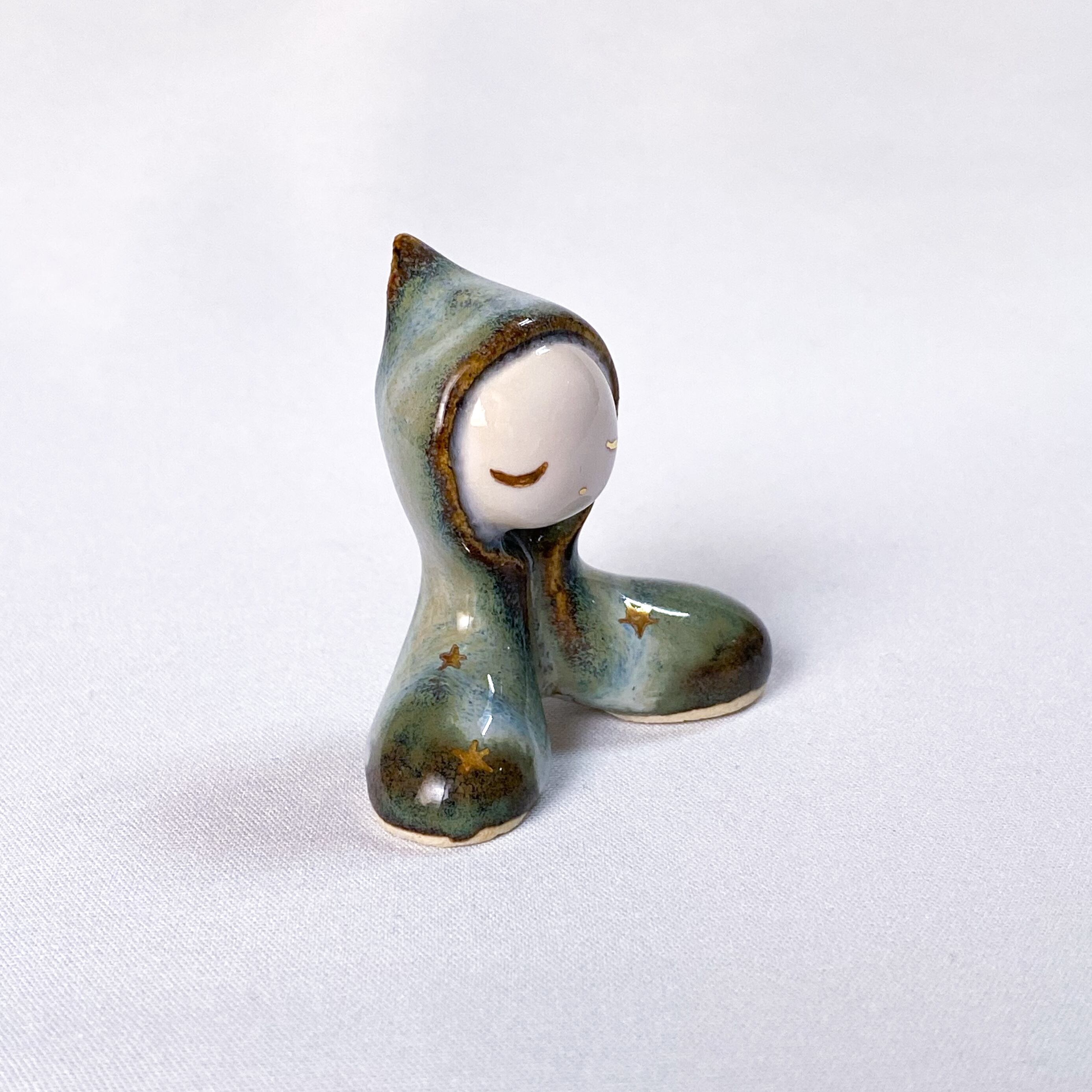手びねりでひとつひとつ造形し、釉薬をかけたあと金彩で目や模様などを描いています。