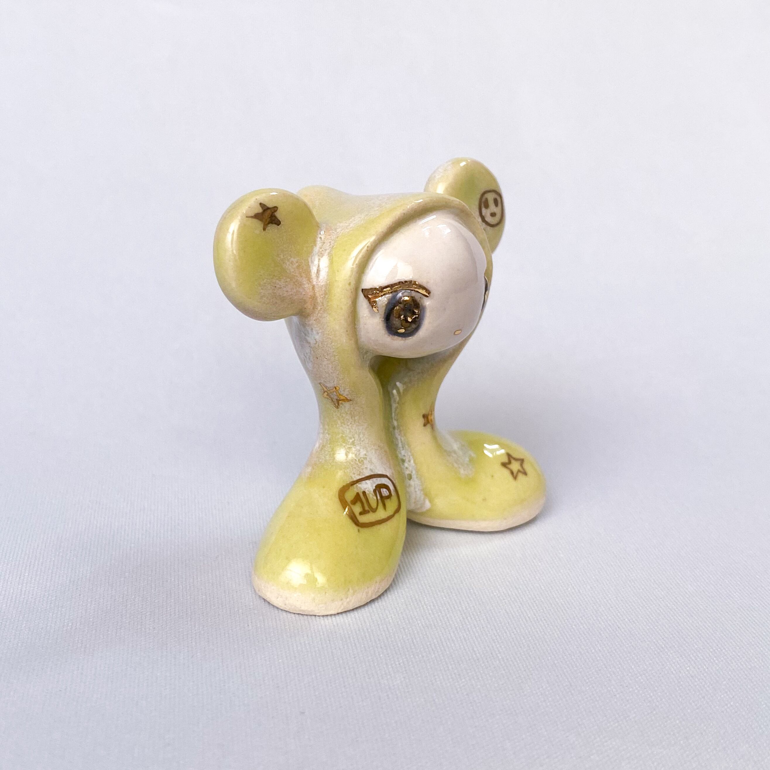 手びねりでひとつひとつ造形し、釉薬をかけたあと金彩で目や模様などを描いています。