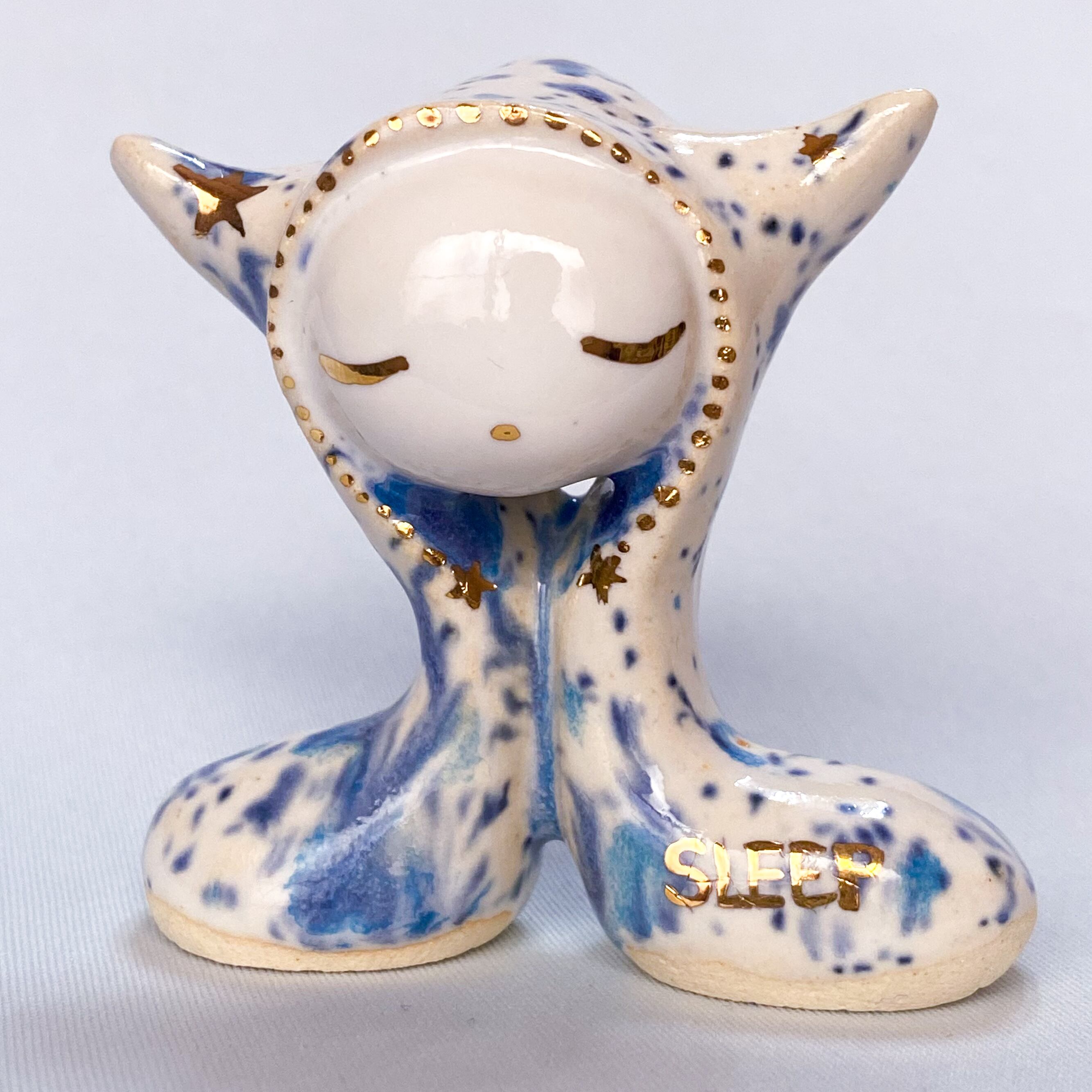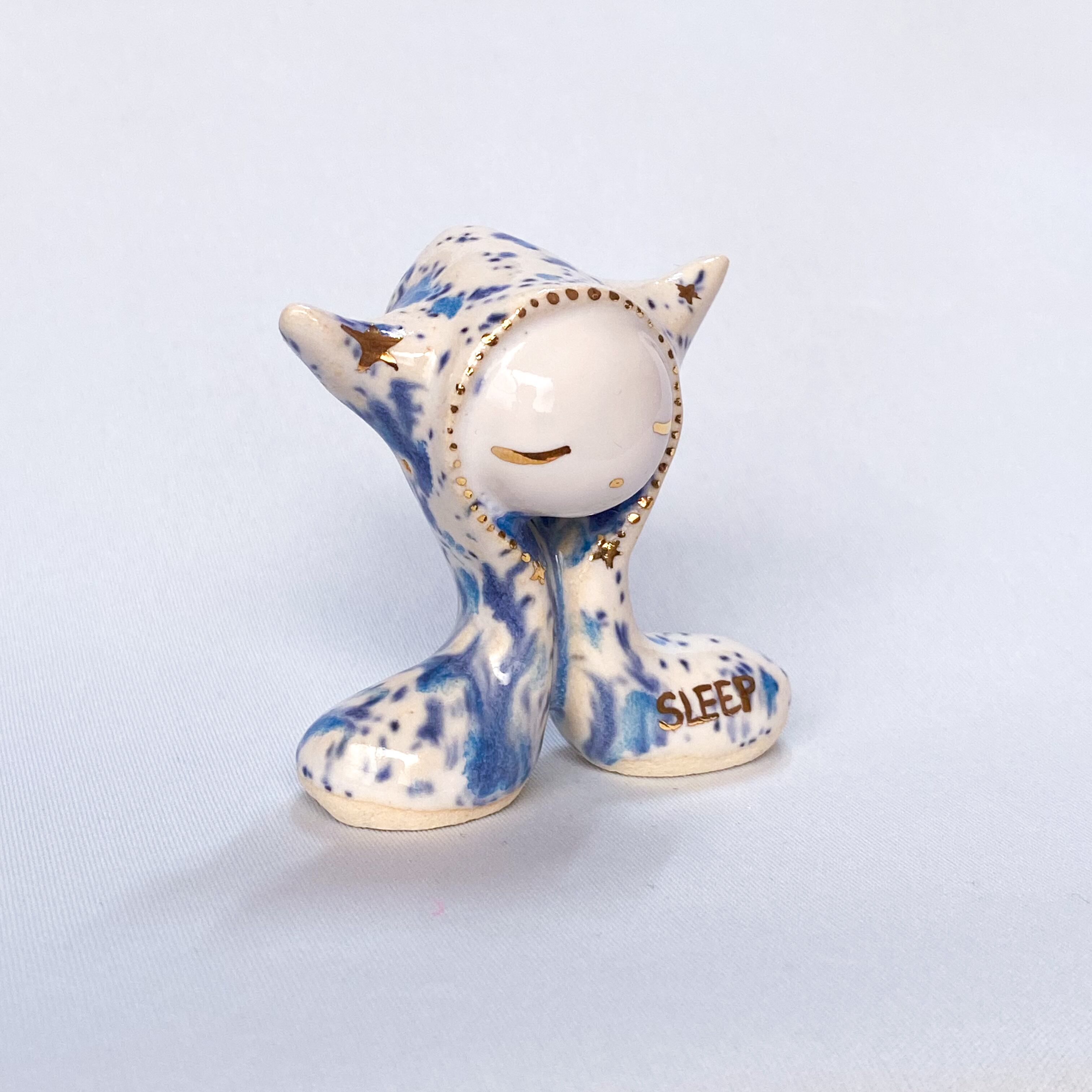 手びねりでひとつひとつ造形し、釉薬をかけたあと金彩で目や模様などを描いています。