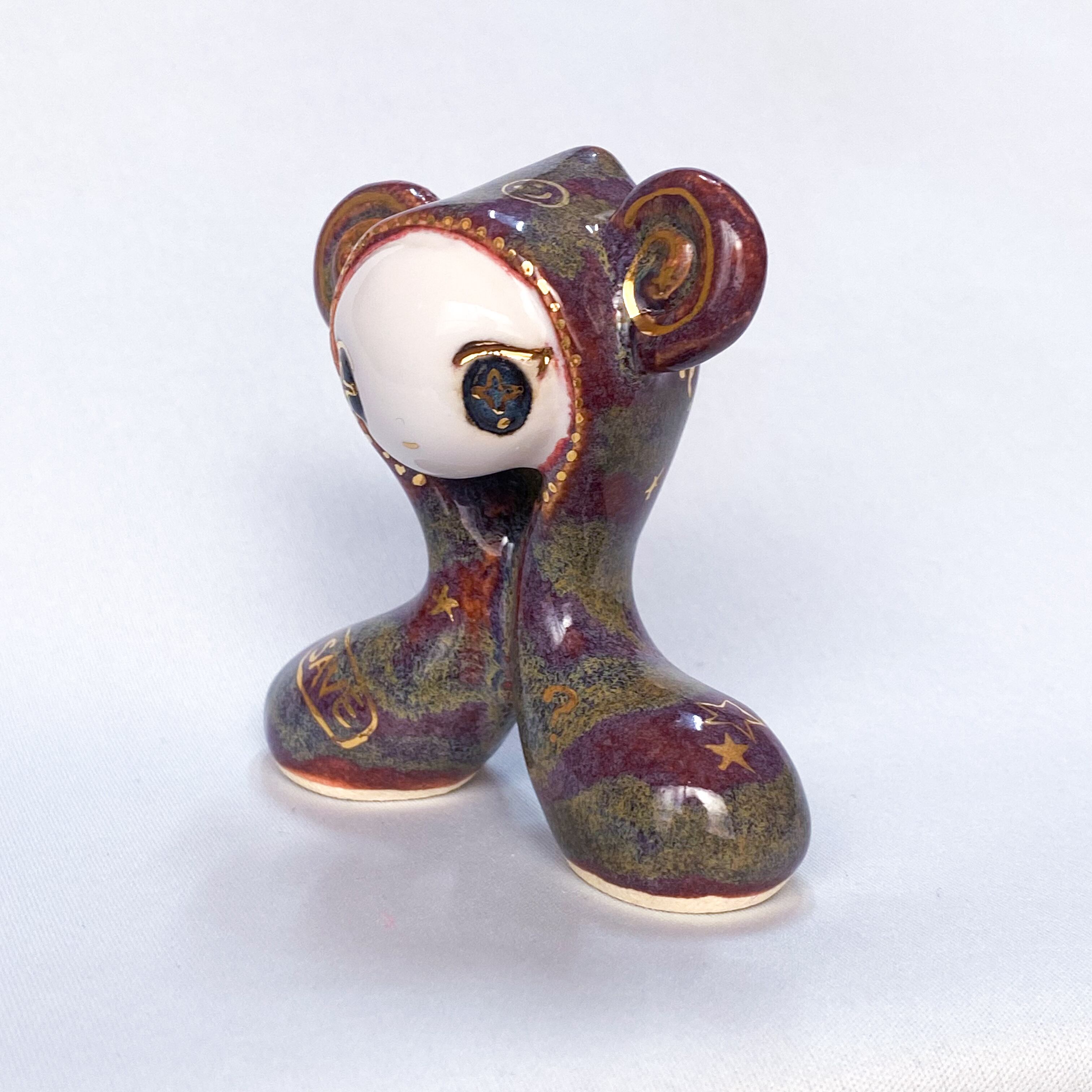 手びねりでひとつひとつ造形し、釉薬をかけたあと金彩で目や模様などを描いています。
