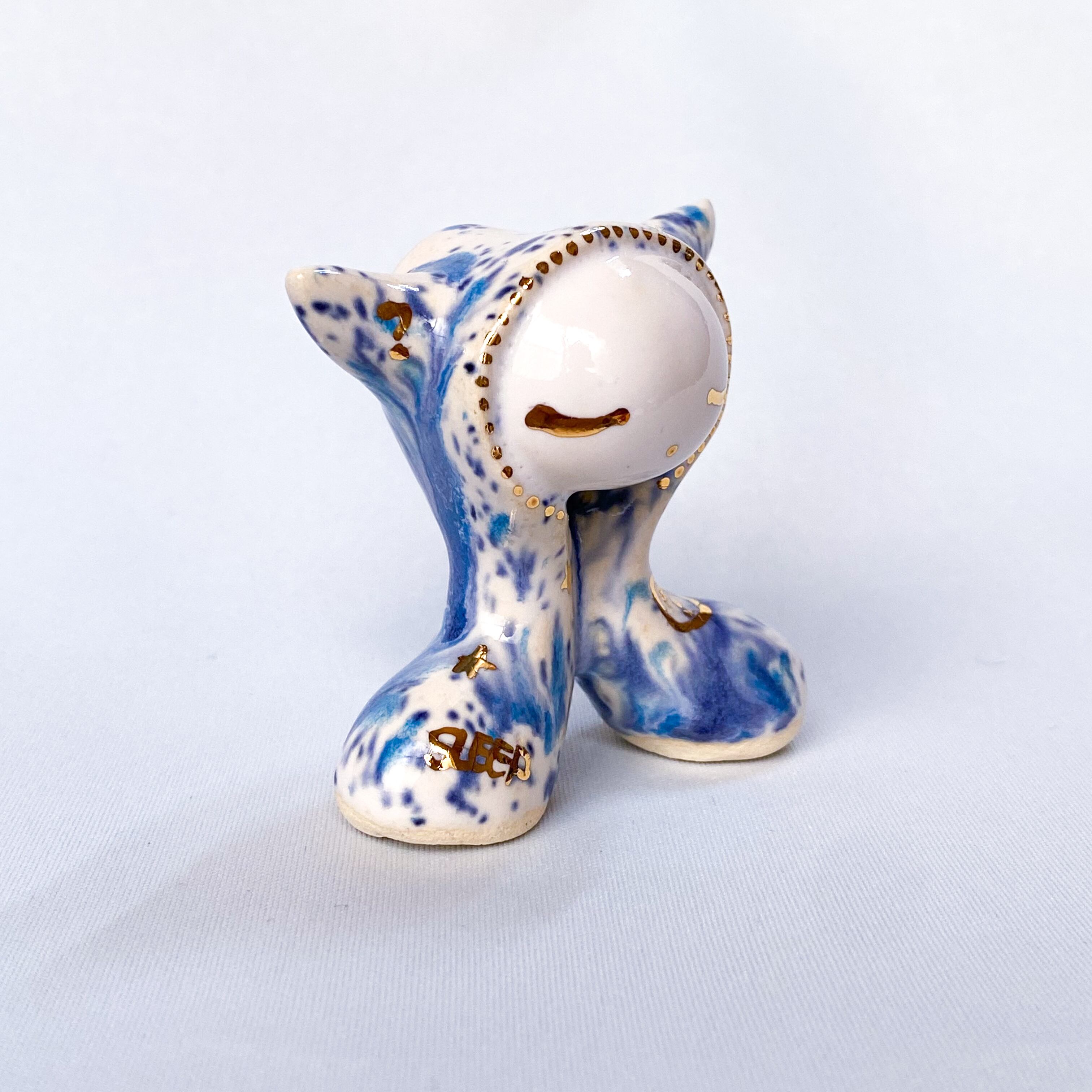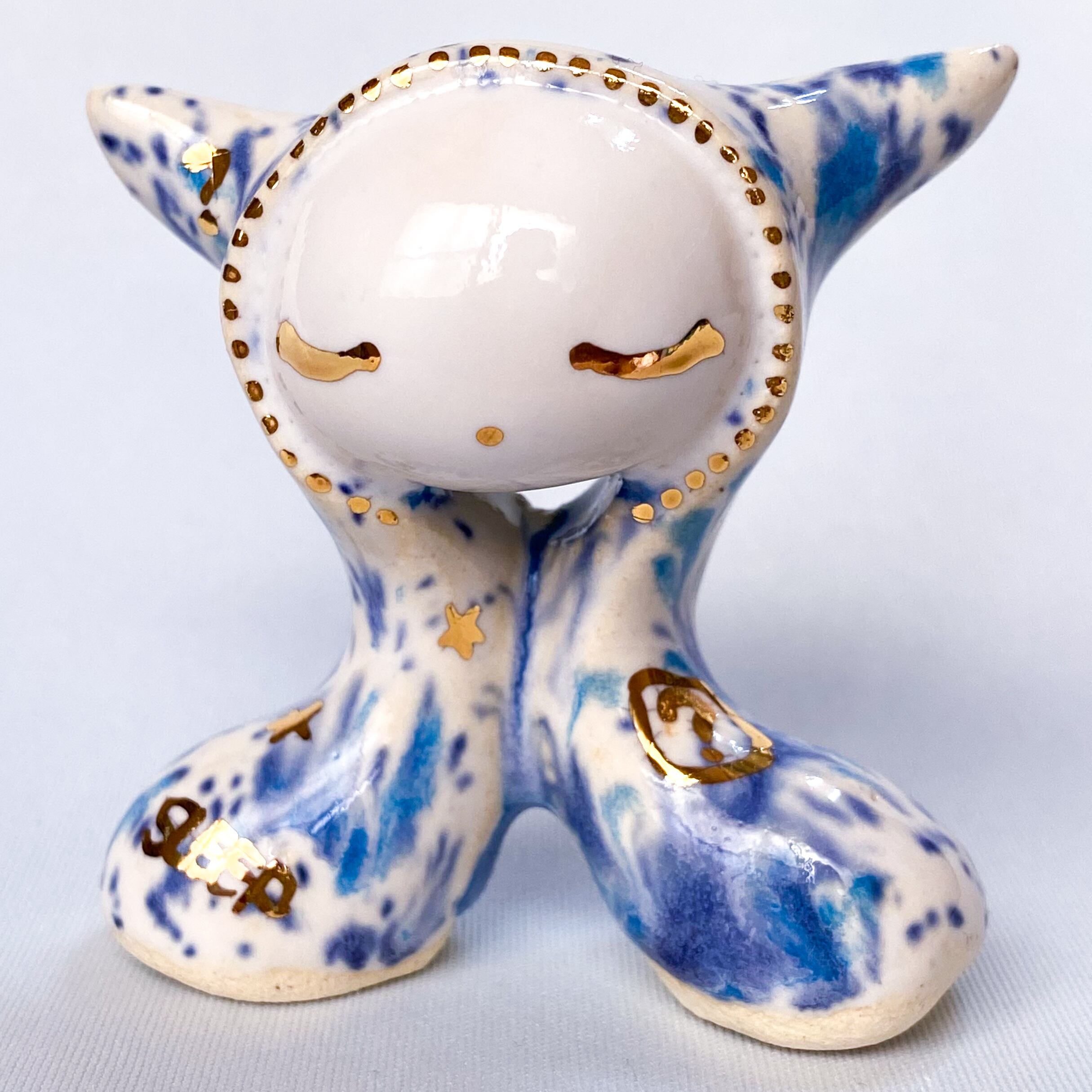 手びねりでひとつひとつ造形し、釉薬をかけたあと金彩で目や模様などを描いています。