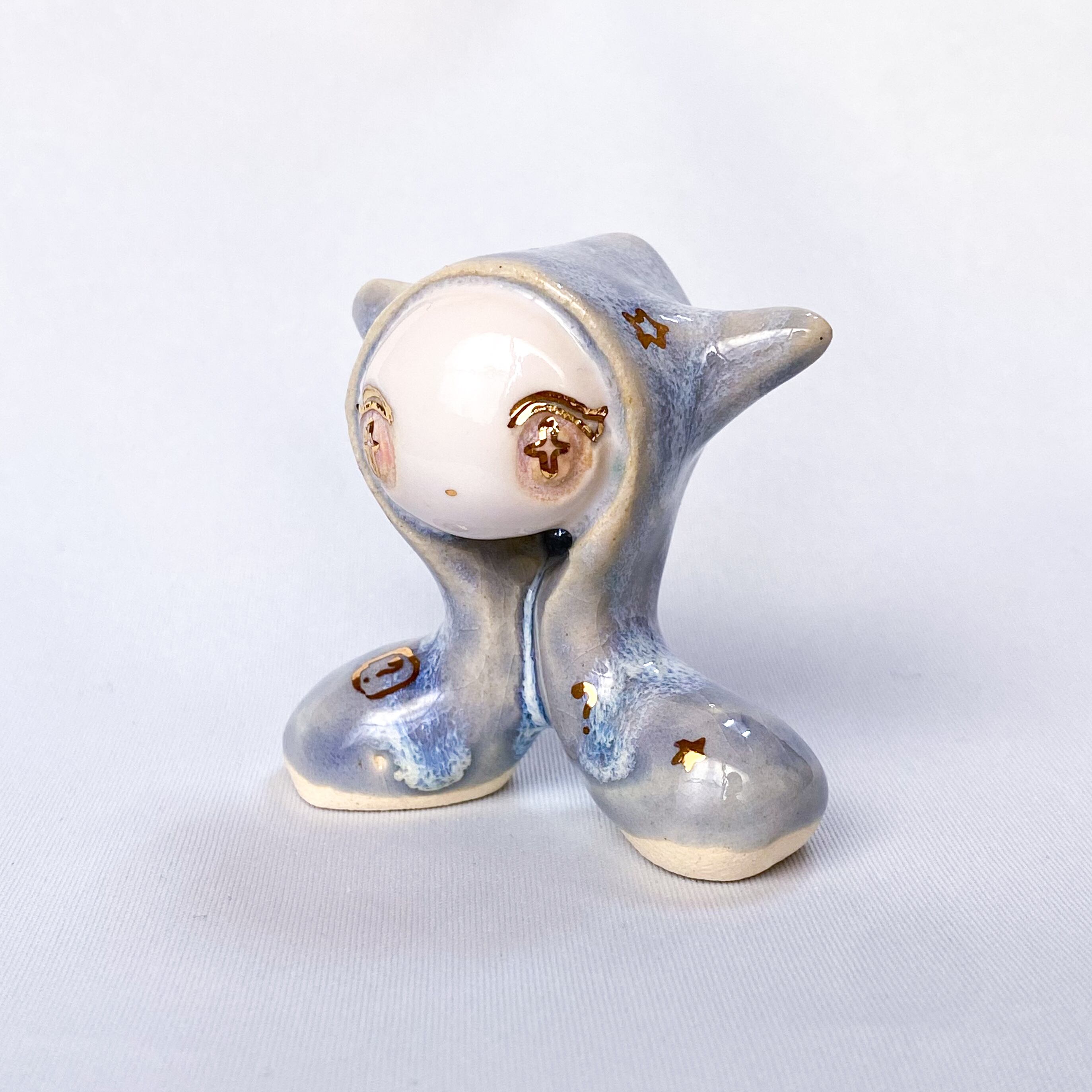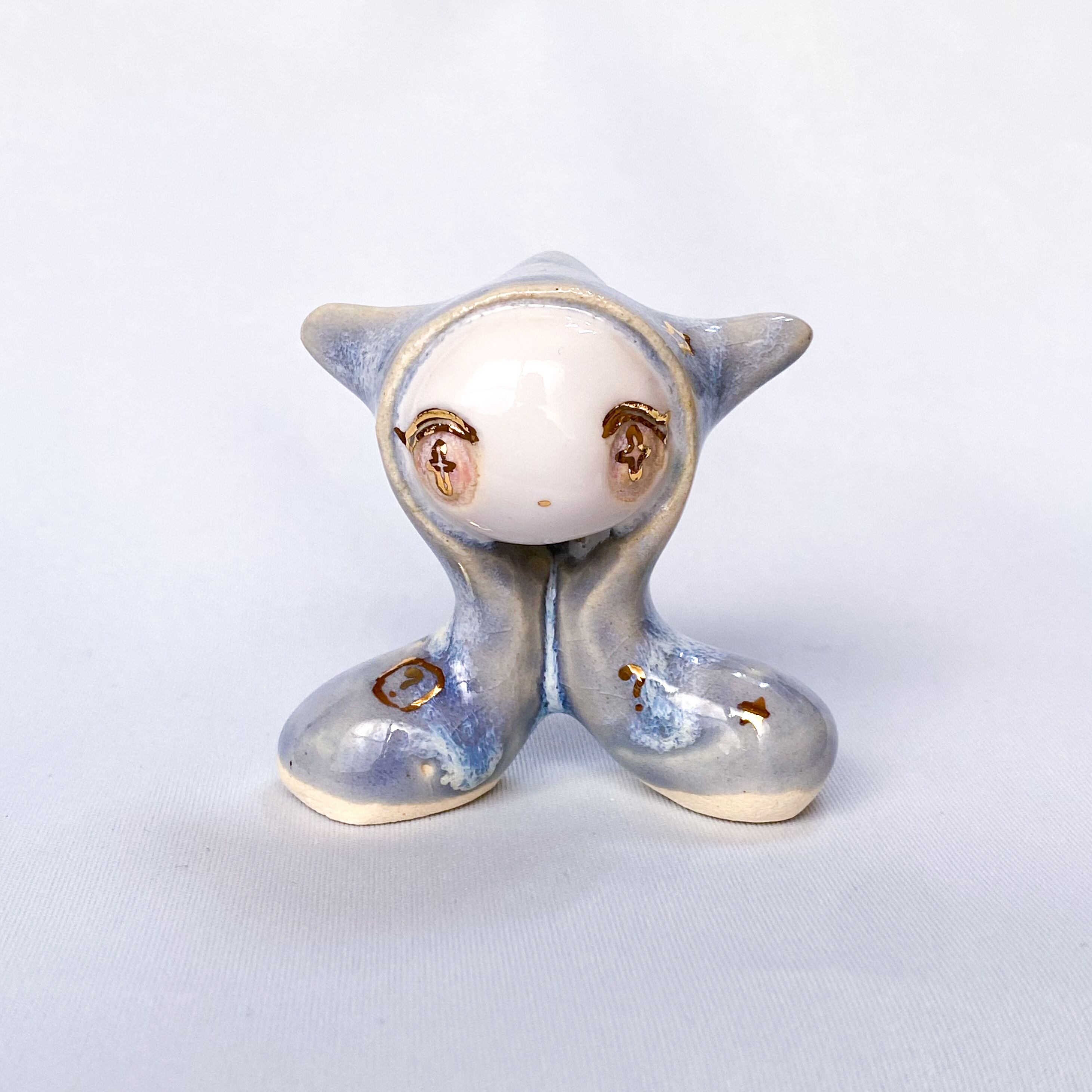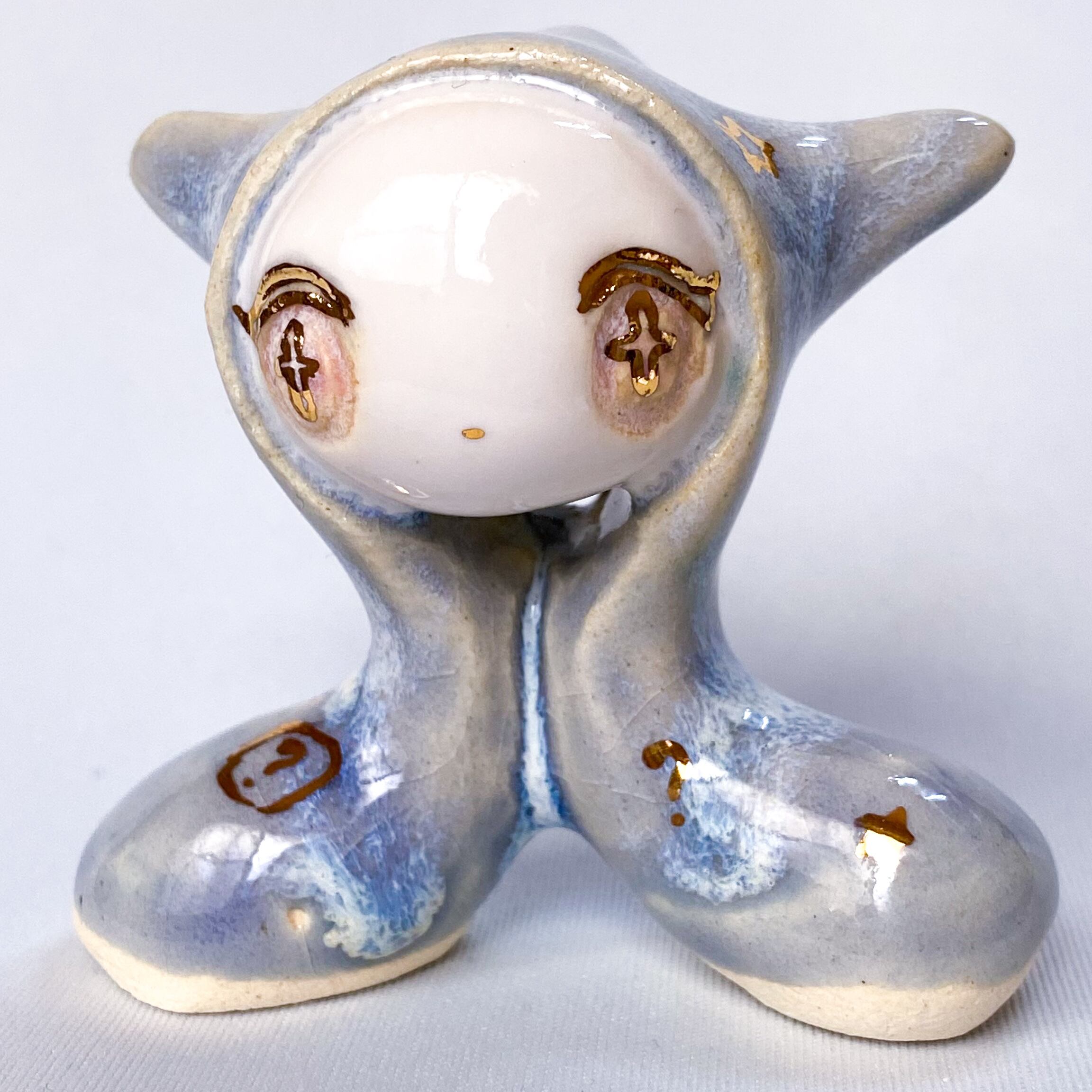手びねりでひとつひとつ造形し、釉薬をかけたあと金彩で目や模様などを描いています。