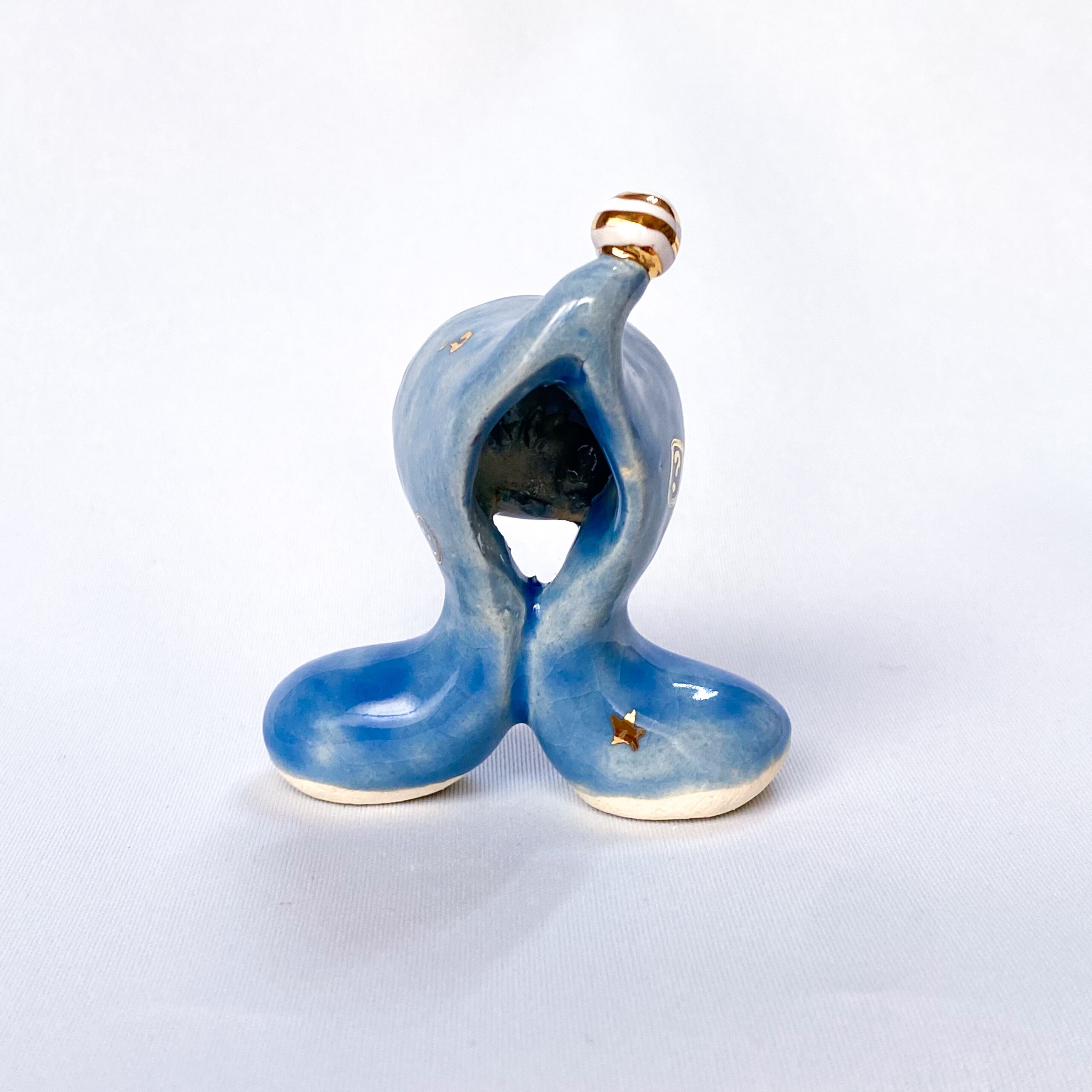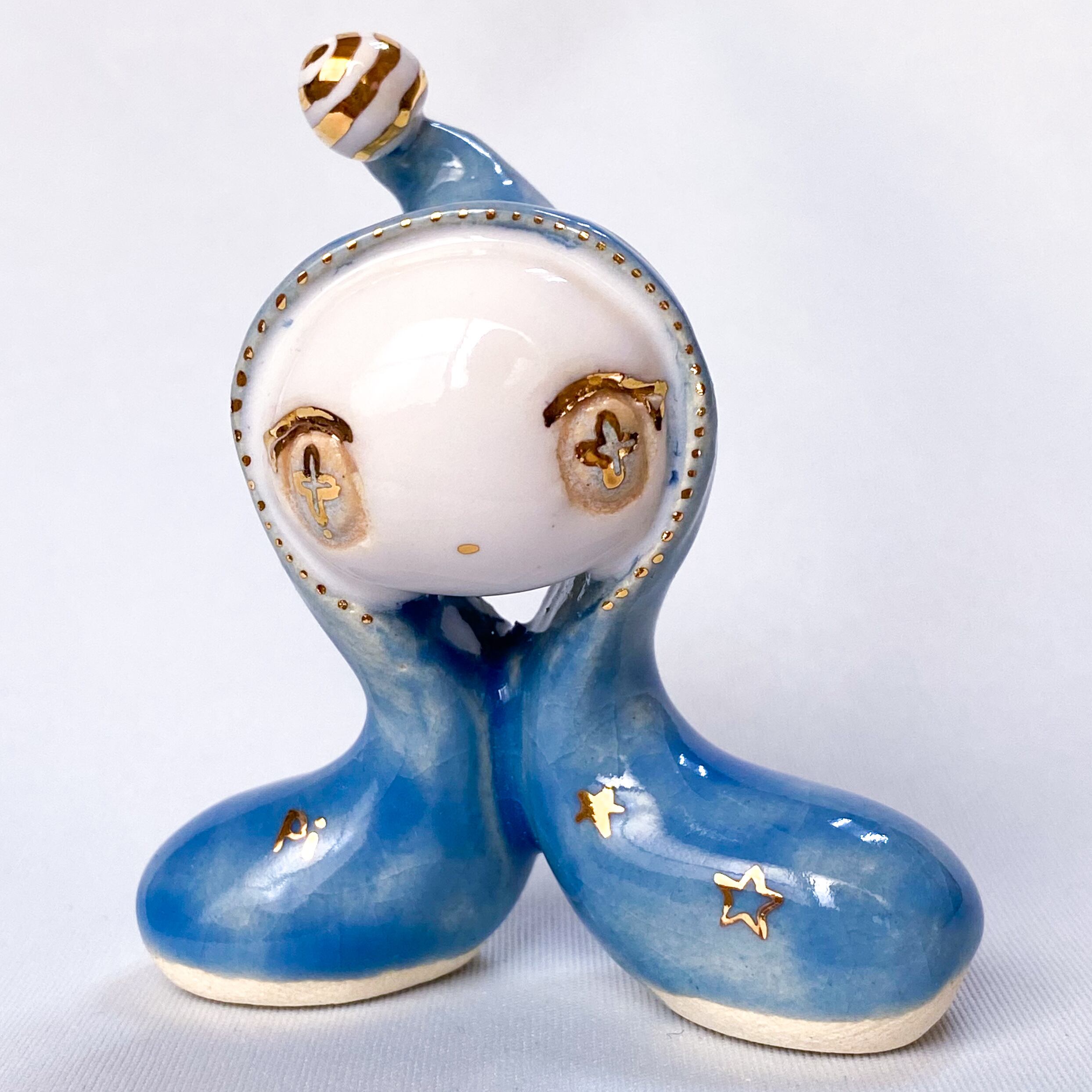 手びねりでひとつひとつ造形し、釉薬をかけたあと金彩で目や模様などを描いています。