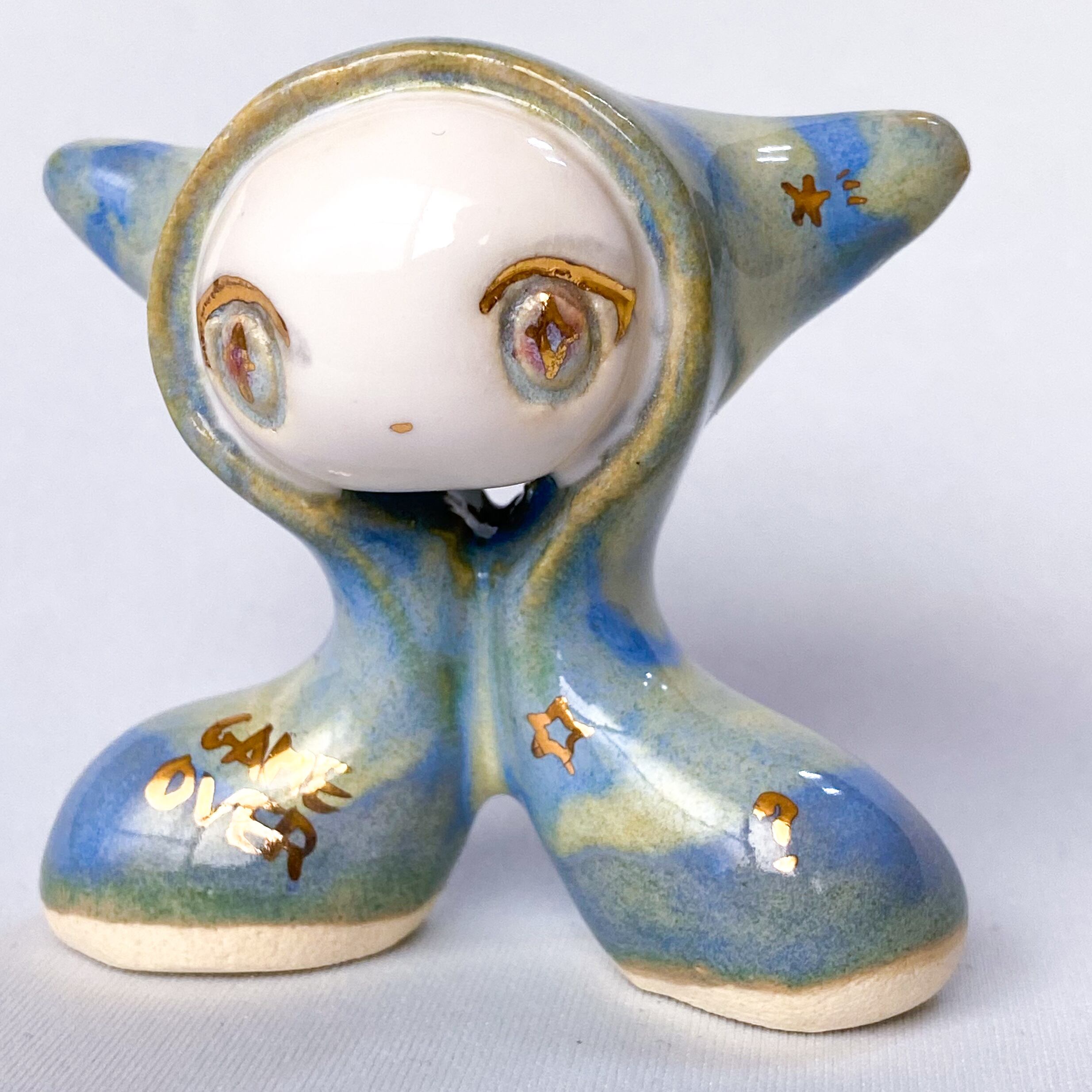 手びねりでひとつひとつ造形し、釉薬をかけたあと金彩で目や模様などを描いています。