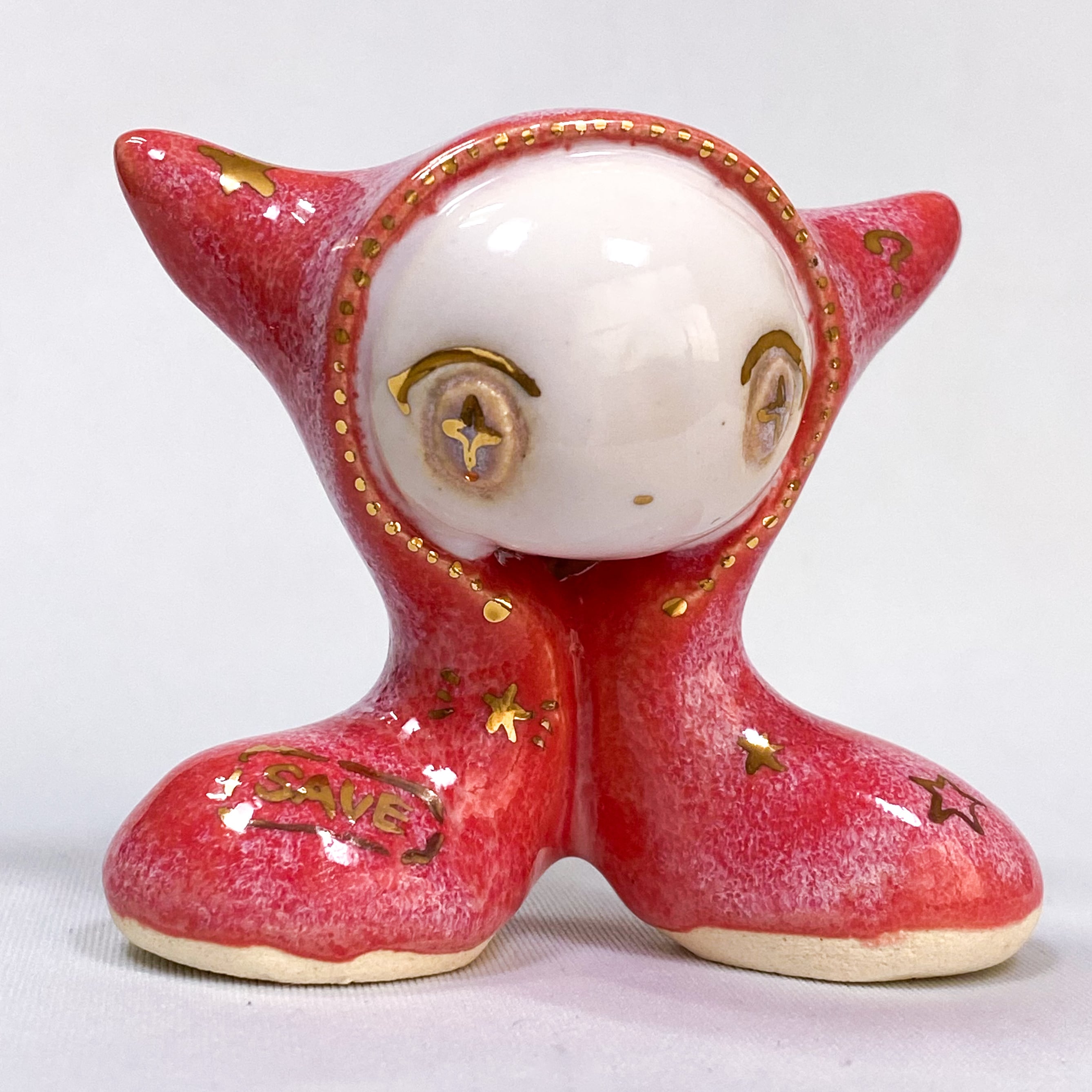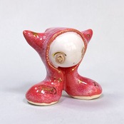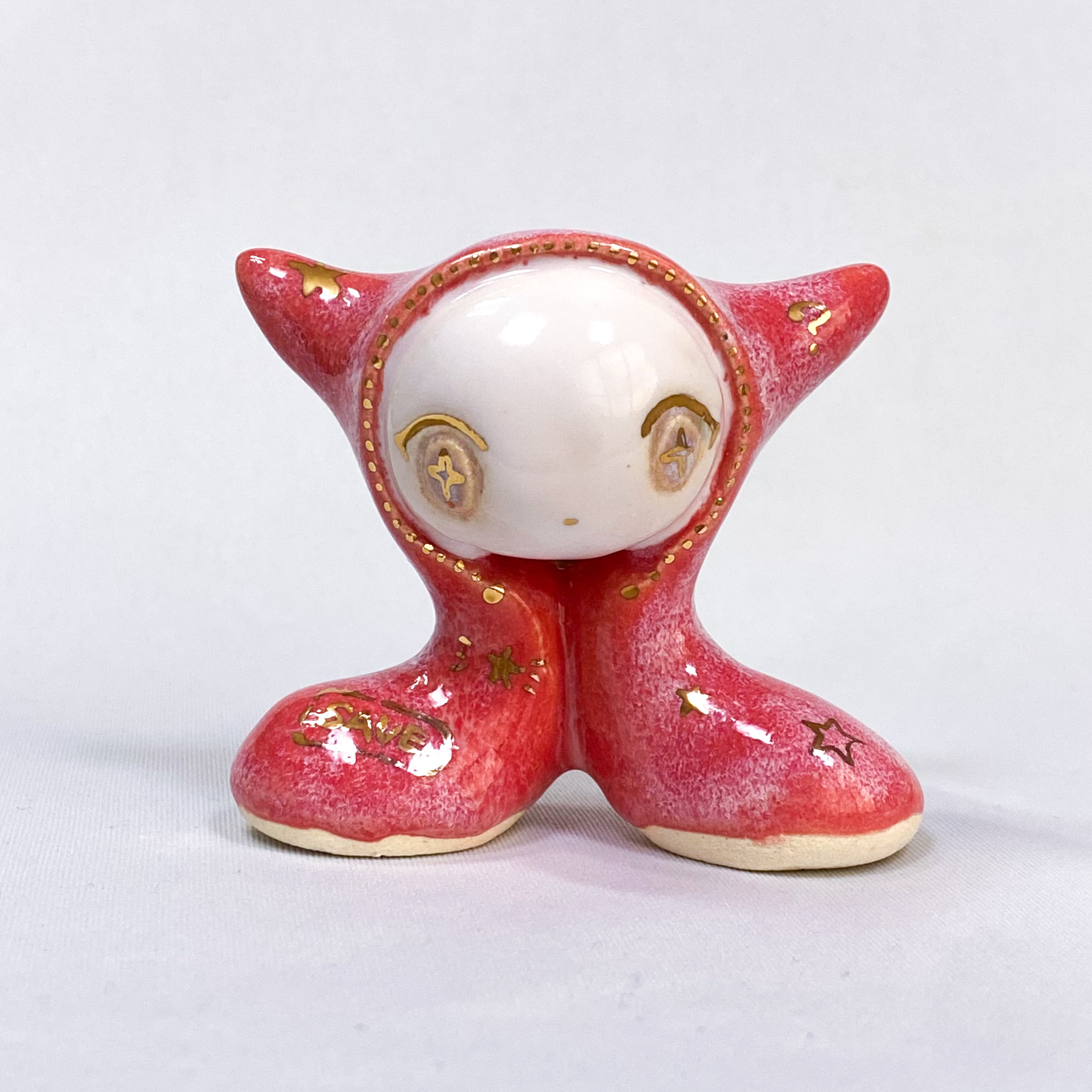 手びねりでひとつひとつ造形し、釉薬をかけたあと金彩で目や模様などを描いています。