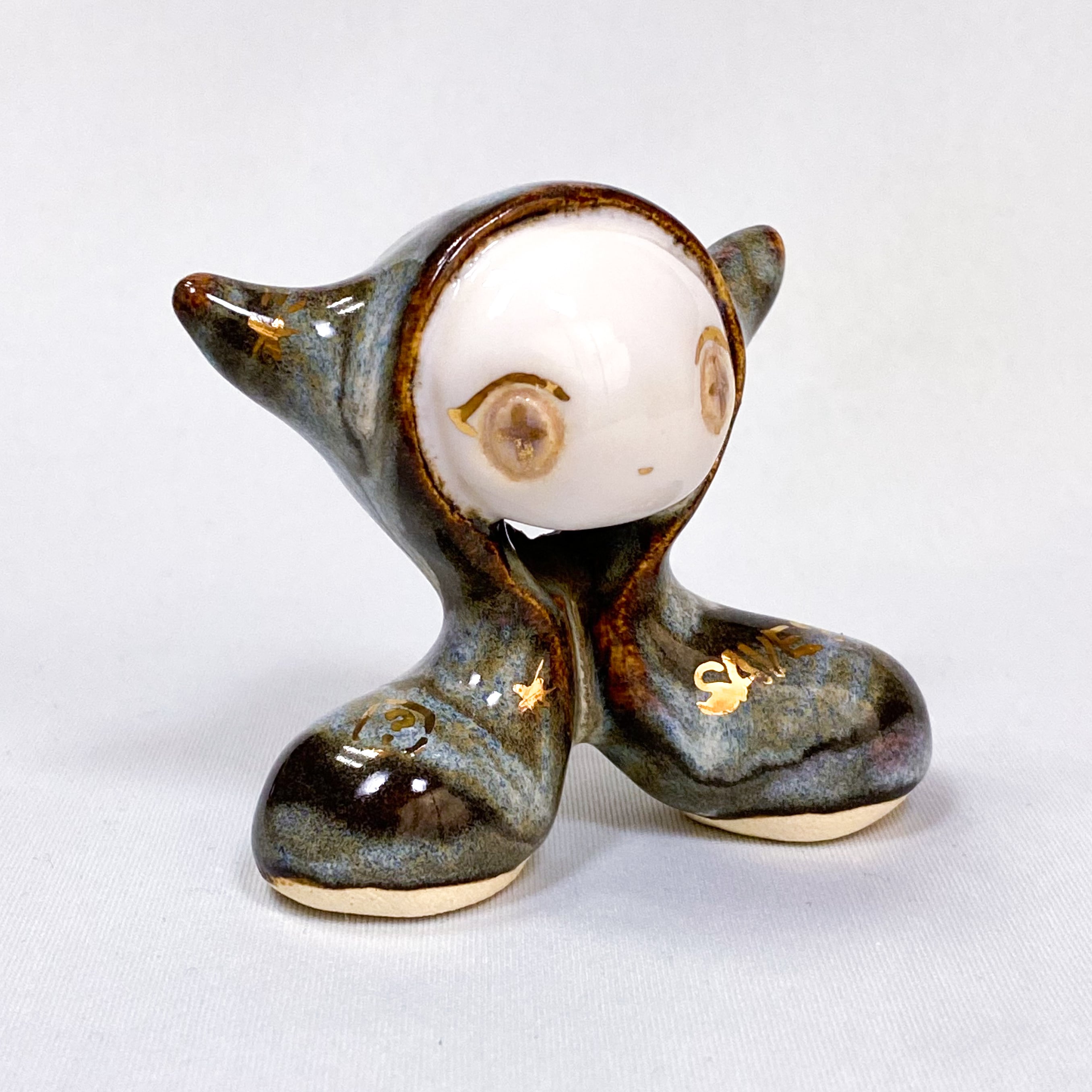 手びねりでひとつひとつ造形し、釉薬をかけたあと金彩で目や模様などを描いています。